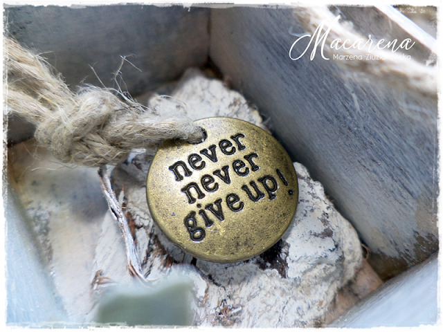 There are stamps by Tim Holtz and Wendi Vecchi and Idea-ology rub-ons, some metal and wooden elements from my old stash, flower ribbon and pieces of natural light wood taken from a pout-pourri set :-)